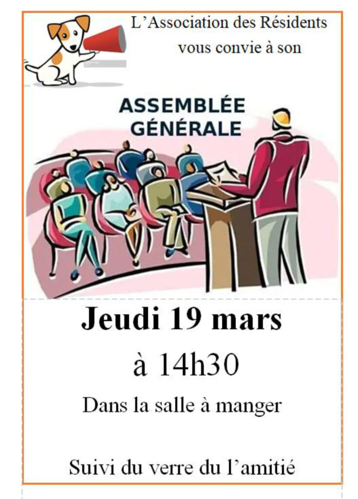 Assemblée générale de l’Association des Résidents : rendez-vous le 19 mars