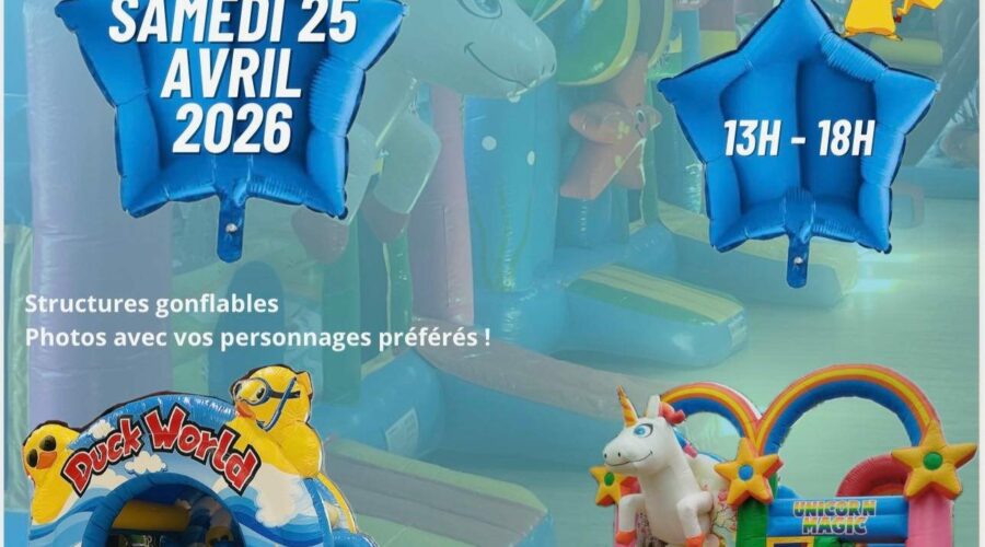 Au programme : parcours gonflables adaptés aux différents âges, jeux et moments photos avec les personnages. L’espace, entièrement sécurisé, permettra aux enfants de se défouler en toute sécurité. Les organisateurs rappellent que les chaussettes sont obligatoires pour accéder aux structures.